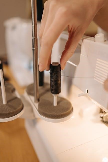 Installing the bobbin in your Singer sewing machine is a crucial step to ensure proper stitching․ Begin by removing the bobbin case from the machine and placing the bobbin inside, making sure the thread is evenly wound and not twisted․ Insert the bobbin into the case, aligning the notch on the bobbin with the spring in the case․ Gently pull the thread to ensure it is seated properly and cut any excess thread above the bobbin․ Replace the bobbin case into the machine, ensuring it clicks into place securely․ Finally, pull the thread gently to ensure it is properly seated and ready for sewing․ Proper bobbin installation ensures consistent stitching and prevents machine issues․